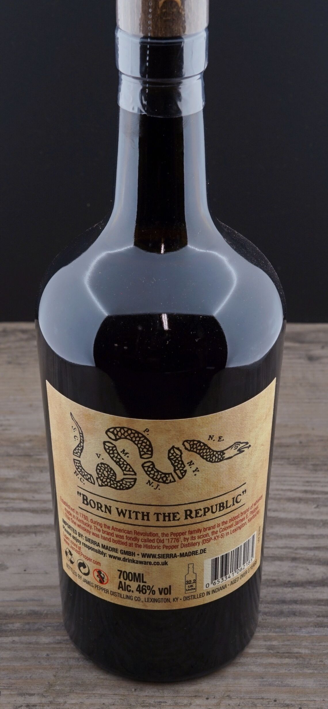 1776 entstand aus dem Geist der Amerikanischen Revolution nicht nur die berühmte Unabhängigkeitserklärung, sondern auch die legendäre Whiskeymarke der Familie Pepper. Gegründet von Elijah Pepper (Destillateur von 1776 bis 1838) übernahm zunächst Oscar Pepper (Destillateur von 1838 bis 1867) das Familienvermächtnis. Schließlich führte Colonel James E. Pepper (Destillateur von 1867 bis 1906) die Marke ins 20. Jahrhundert. Der aus Kentucky stammende Colonel war ein Bourbon-Aristokrat erster Güte und eine Leitfigur der amerikanischen Industrie. Er reiste in einem privaten Eisenbahnwagen umher, züchtete Vollblüter für das Kentucky Derby und brachte die Marke seines Großvaters zu ihren größten Erfolgen. James E. Pepper war es auch, der seinem Whiskey mit stolzem Verweis auf die Rezeptur aus der Ära der Revolution den Namen „Old 1776“ gab.Schließlich wurde die Kultmarke durch das Unternehmen Georgetown Trading Co. übernommen, dessen Wurzeln ebenfalls auf die Zeit der Amerikanischen Revolution zurückgehen. Nach umfangreicher Recherche konnte man Originalabfüllungen des Whiskeys aus der Zeit vor, während und nach der Prohibition aufspüren und analysieren. Die Georgetown Trading Co. erwarb sogar ein eigenhändig von James E. Pepper verfasstes Schreiben aus dem Jahr 1887, in dem dieser seine Produktionsmethoden und die genaue Zusammensetzung der Maische erläutert.