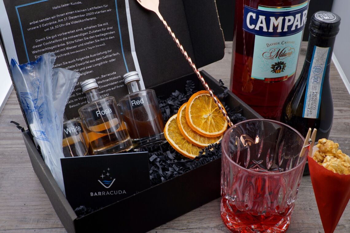 Für Ihre digitalen Firmenevents oder auch privaten Anlässe bieten wir Ihnen unsere hochwertigen Drinkkonzepte auch als Cocktailbox an. Sie können jederzeit online bestellen und wir liefern direkt zu Ihnen ins Büro, nach Hause oder nach Absprache zu jedem einzelnen Mitarbeiter.